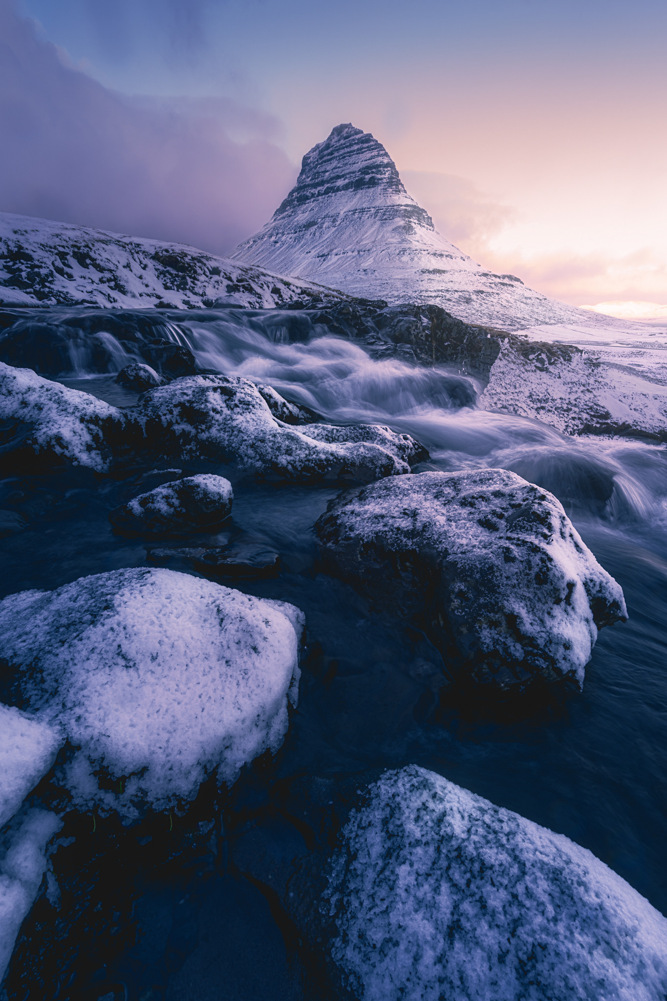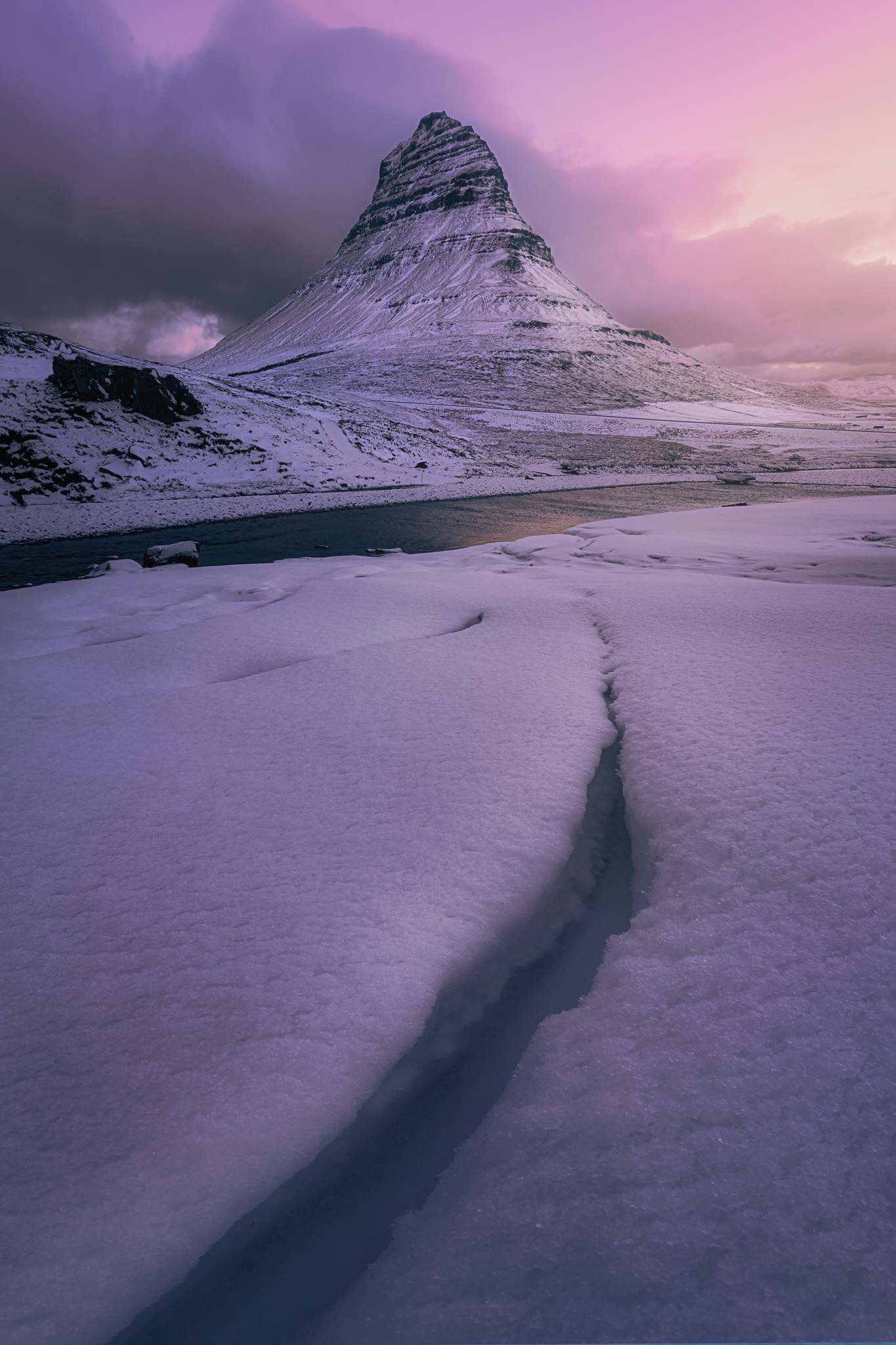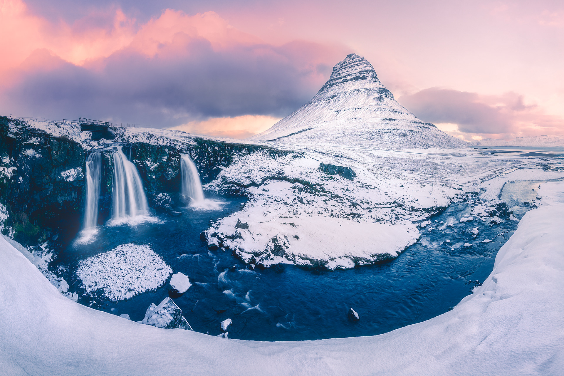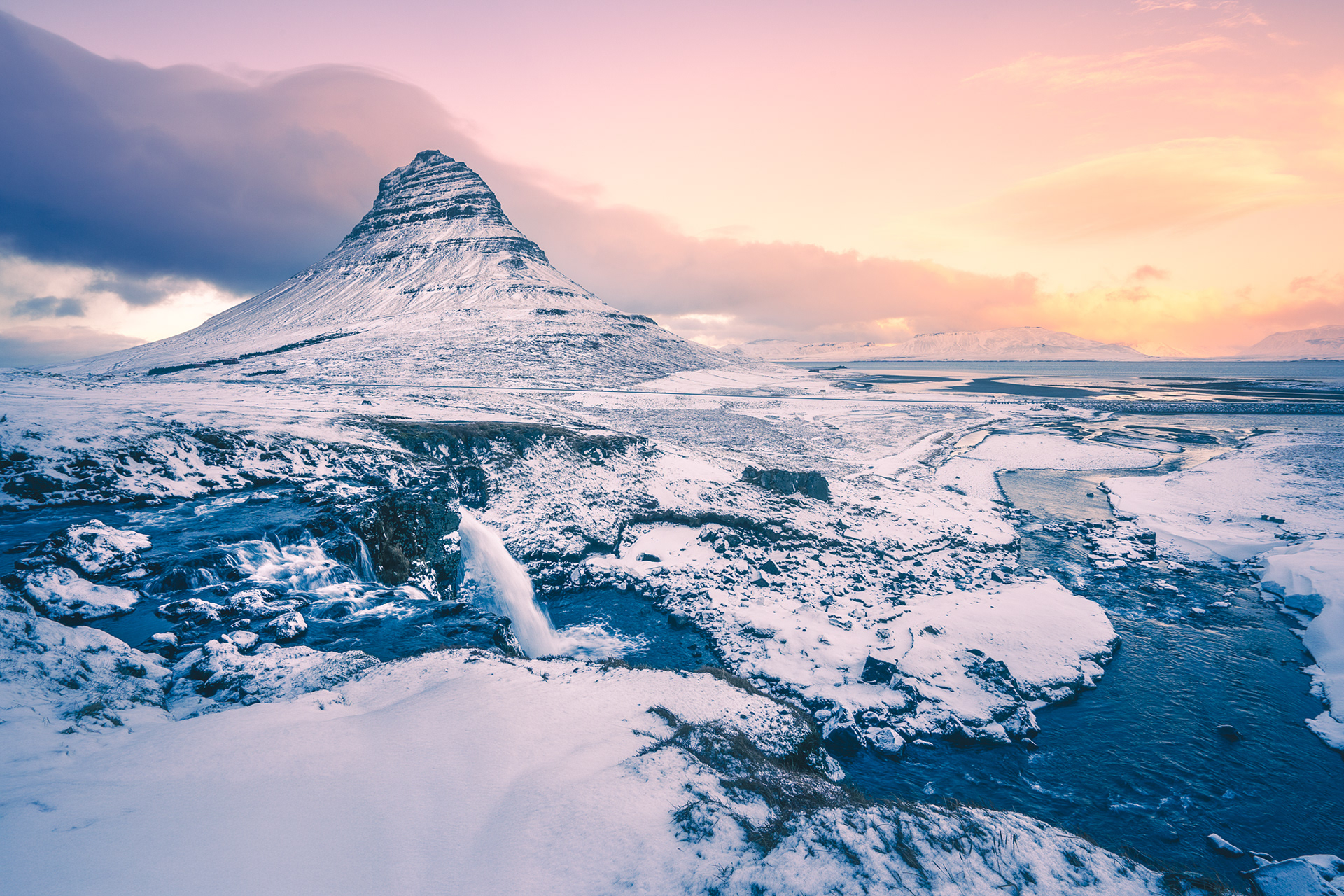 Se trata de un volcán inactivo moldeado por la erosión glaciar, cuya silueta única se ha convertido en símbolo del paisaje islandés. Su fotogenia se multiplica gracias a su proximidad a las cascadas Kirkjufellsfoss, que permiten componer escenas casi de fantasía, especialmente en invierno con nieve y hielo.